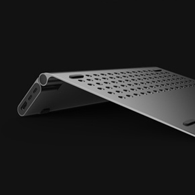 它不仅是一个笔记本电脑支架,也是一个集成的扩展码头。帮助用户找到更容易的使用角度,设计舒适的手腕,合理的人机工程学设计是遵循人体数据和操作习惯;笔记本电脑支架尽可能接近笔记本电脑的键盘面和桌面,减少用户的手腕疲劳。内置TypeC转接器,支架变成扩展码头,将计算机上的TypeC接口扩展到HDMI、TypeC和三个USB3.0。更合理的接口位置布局,左边是输入输出接口区,右边是USB接口区。
